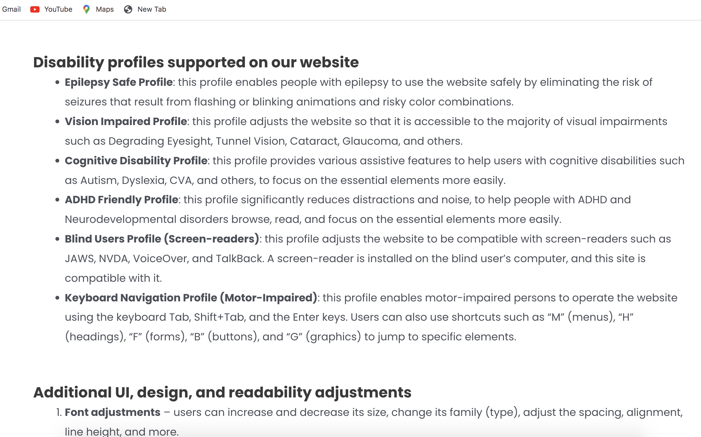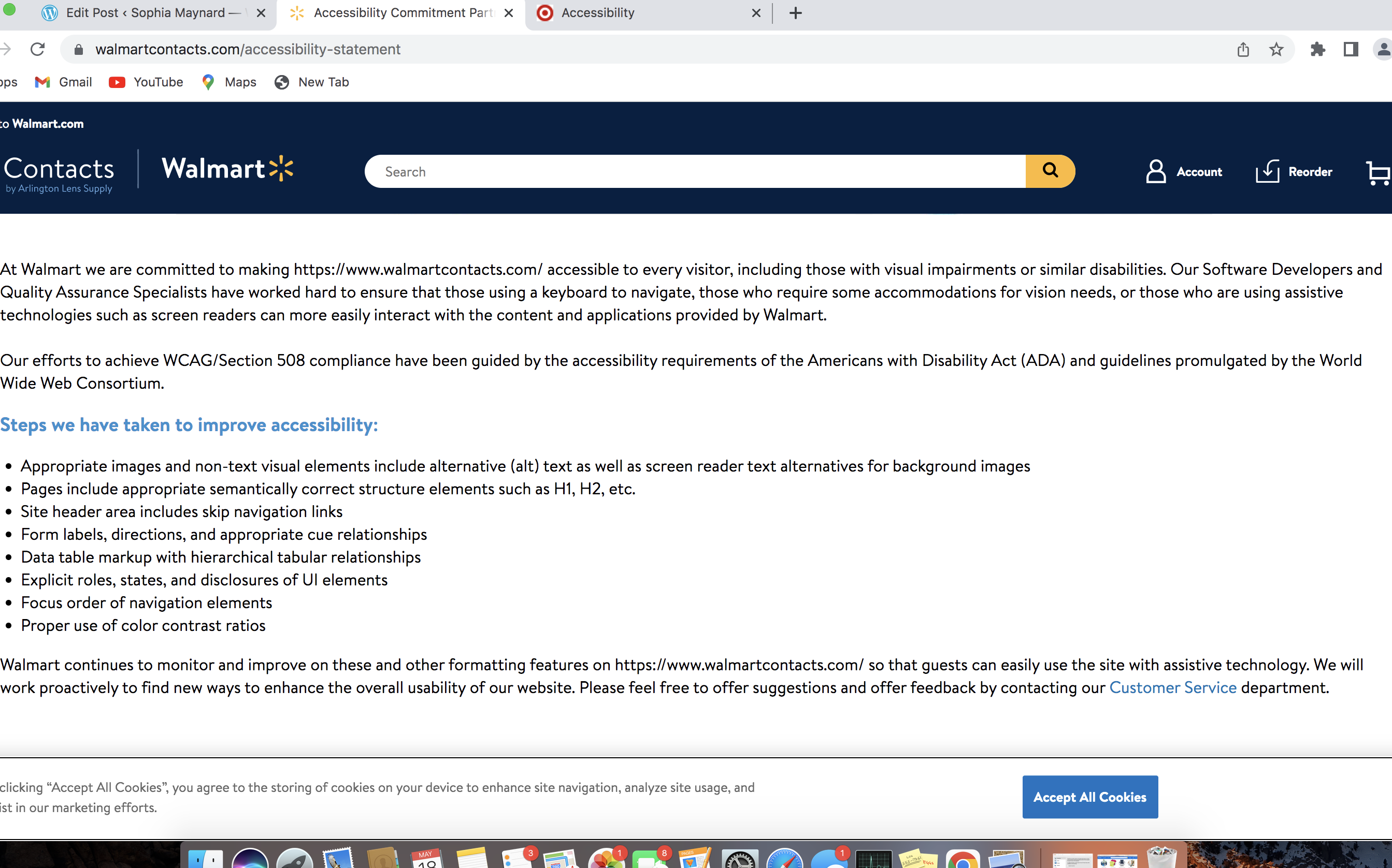 All websites, especially large corporations like Target and Walmart, have a commitment to serving all of their customers with every kind of ability/disability. The accessibility statements by these companies is great, and I think that Walmart should follow in target’s footsteps in expanding their accessibility statement, adding what specifically they are doing to improve their site.